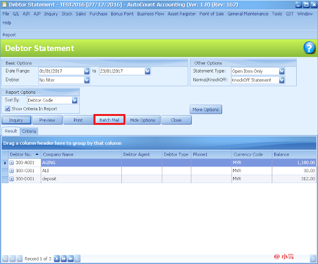 AutoCount实用小贴士: Send Debtor Statement by using Batch Mail