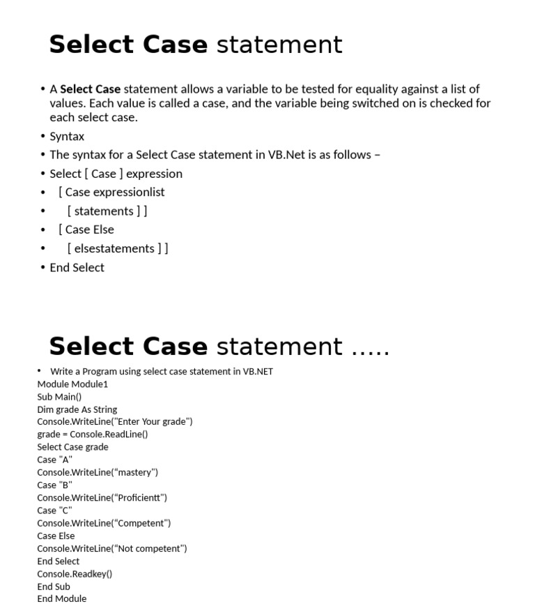 Select Case Statement Switch | PDF