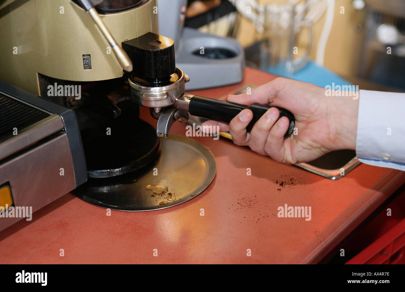 Coffee making using espresso machine at home Stock Photo - Alamy