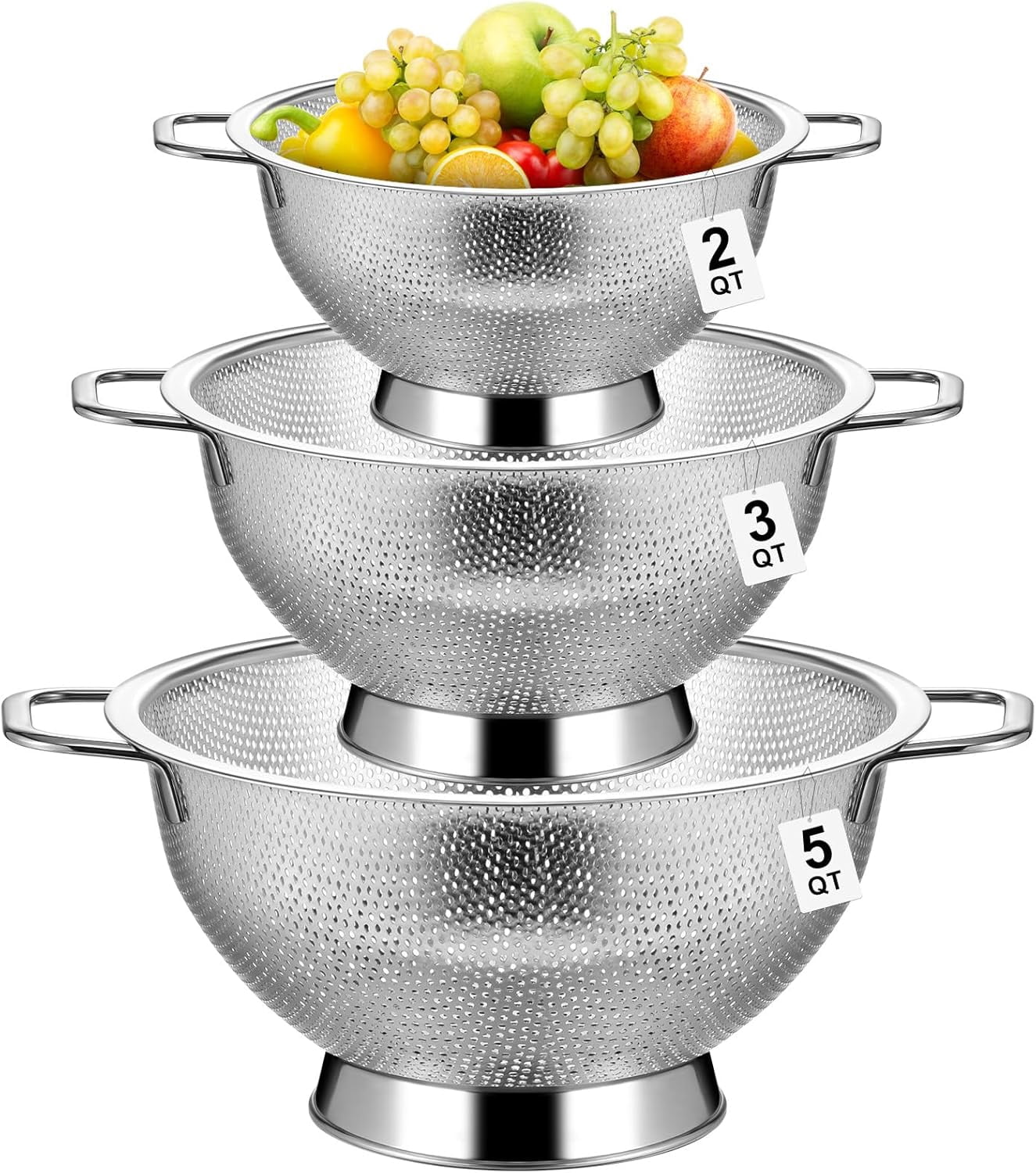 3 Pcs Stainless Steel Colander Set 2/3/5 Qt Colander for Kitchen ...