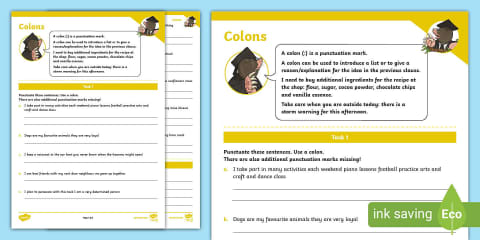 Colon Worksheets | Punctuation Collection | Reading Duck.com