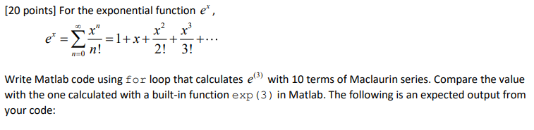 Solved (20 points) For the exponential function e", 1+ X + + | Chegg.com