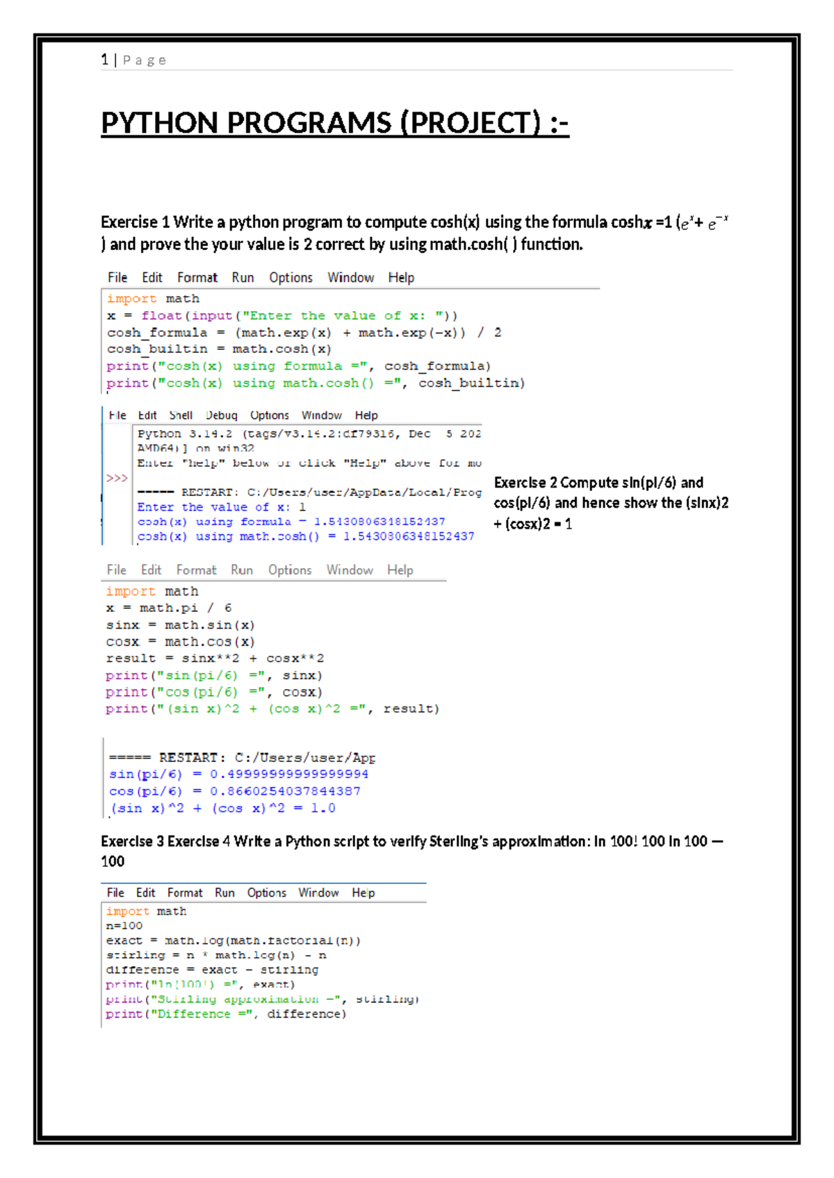 PYTHON PROGRAMS (PROJECT): Exercises on Mathematical Functions and ...