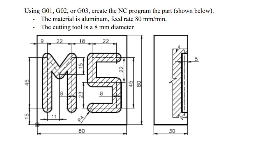 Solved Using G01, G02, or G03, create the NC program the | Chegg.com
