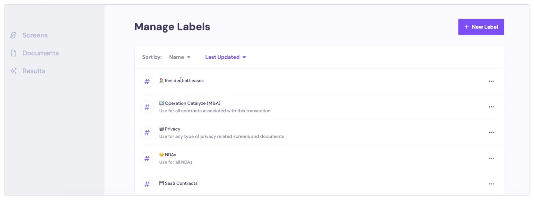 Use Labels to Manage, Organize, and Filter Screens and Documents.