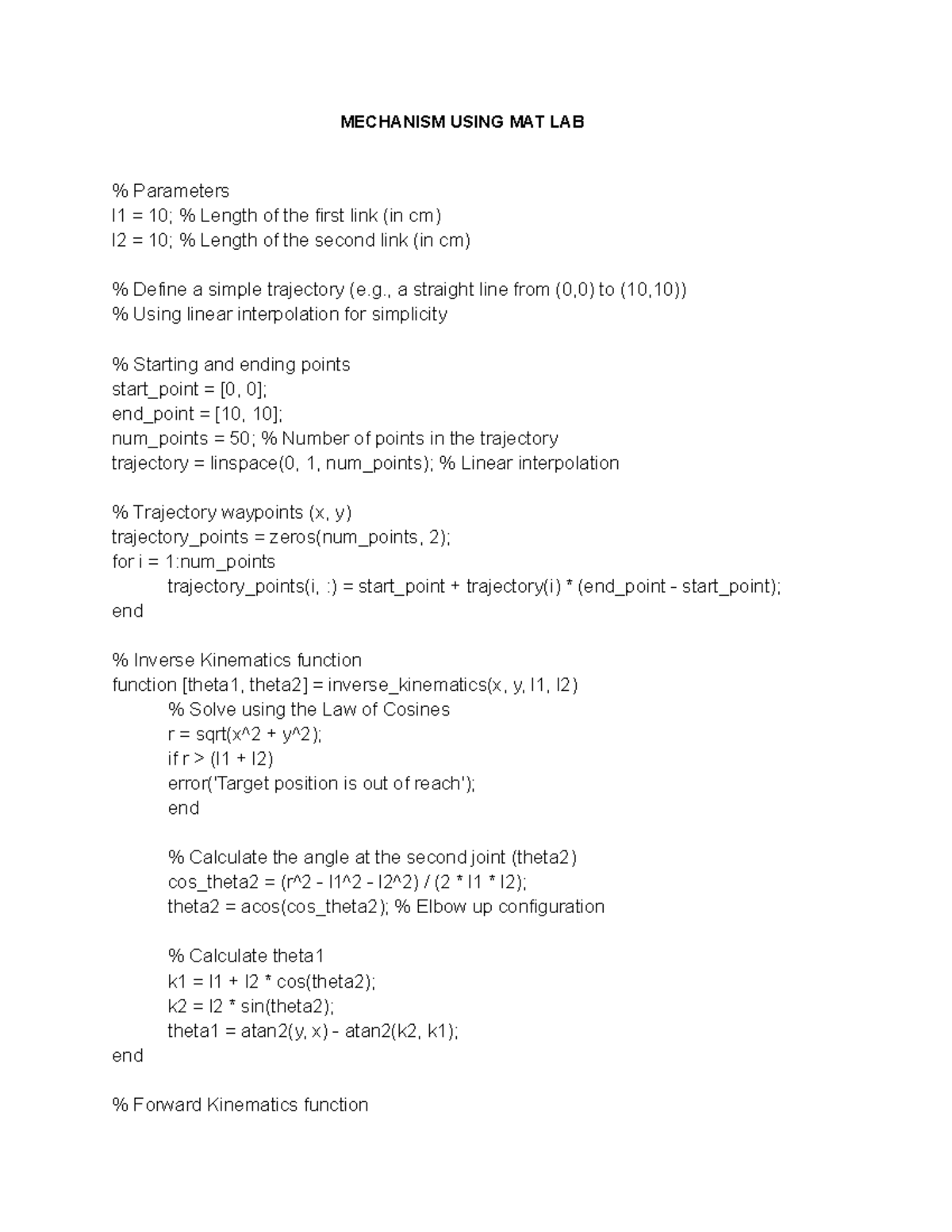 Mechanism Simulation Using MATLAB: Trajectory Analysis and Kinematics ...