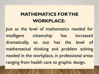 PowerPoint - Mathematics in the Workplace.pptx - Objectives • To ...