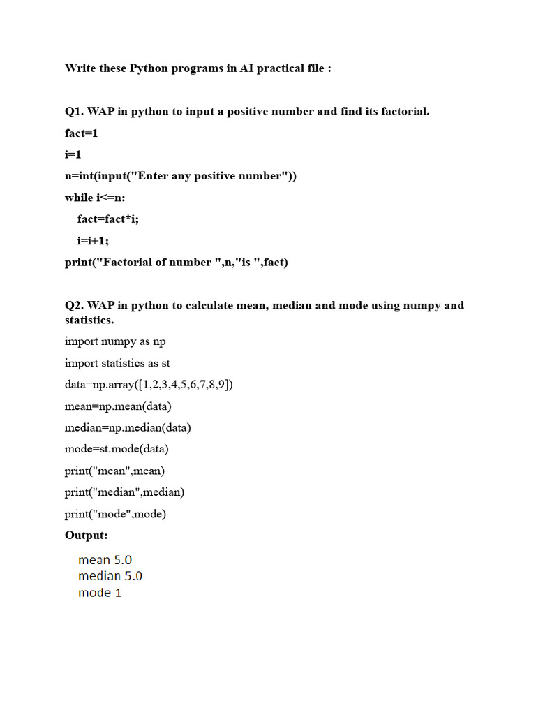 Python Programs for AI Practical Class 10 | PDF