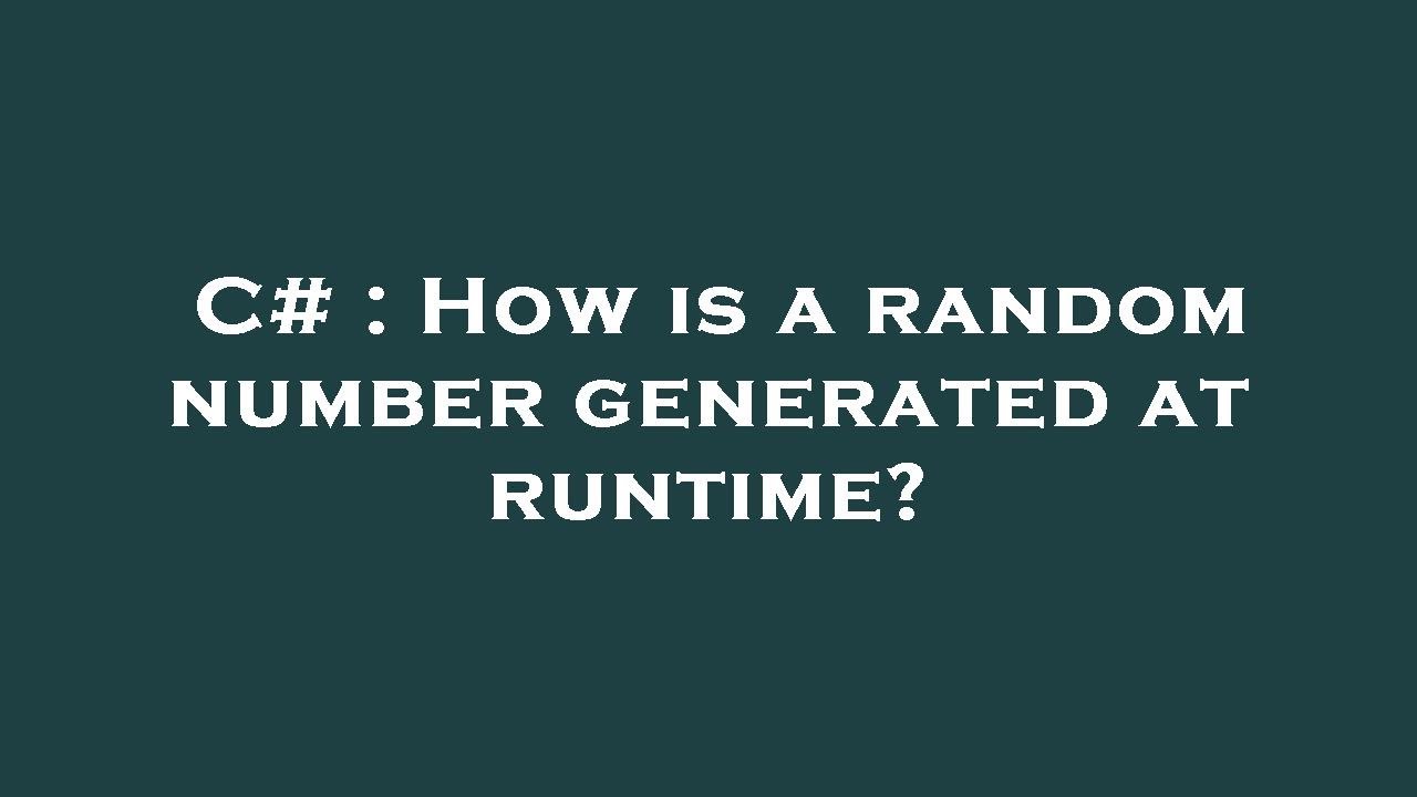 C# Lesson! How To Generate a Random Number or a Random String ...