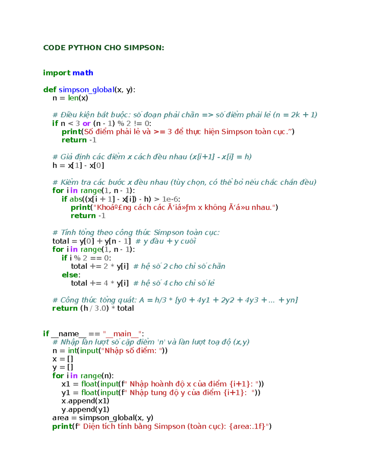 Python Simpson Method Implementation for Numerical Integration - Studocu