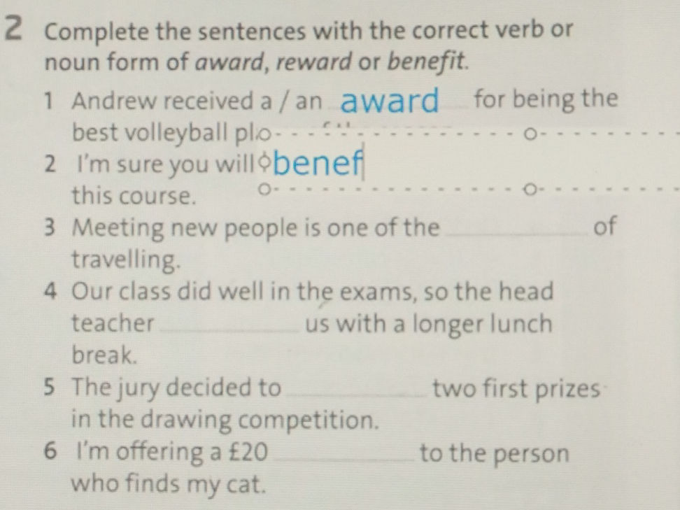 He gave the reward to none.(2) Make two meaningful sentences to bring ou..
