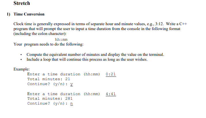 Solved Stretch 1) Time Conversion Clock time is generally | Chegg.com