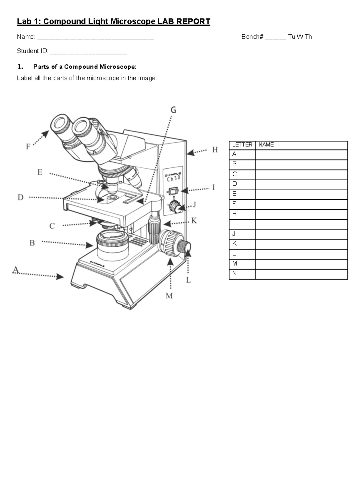 Lab Report #2 - Learning How to use a compound light microscope - Bio ...