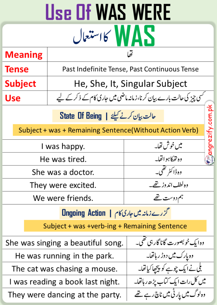 Use Of Was Were In English And Urdu PDF - Angrezify