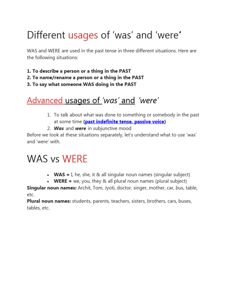 Was were use: 60 Easy and Simple Sentences – English Vedas Blog