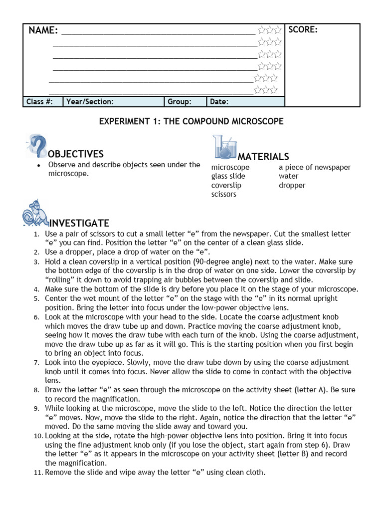 Laboratory Skills 5 Using A Compound Light Microscope Lab Answers ...
