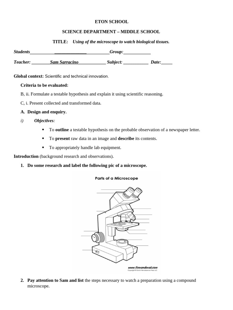 Microscope Laboratory Activity by Cynthia Cuellar | TPT