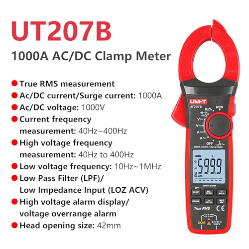 UNI-T UT207B Digital Clamp Meter True RMS LPF 6000 Count AC DC 1000A ...