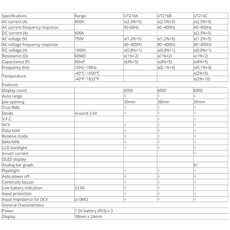UNI-T-UT216-Series-True-RMS-Digital-Clamp-Meter-UT216A-UT216B-UT216C ...