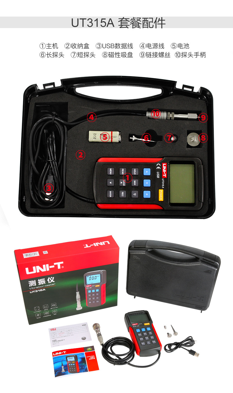 优利德UT315A手持式测振仪多探头 震动测量USB传输软件数字测振仪-阿里巴巴