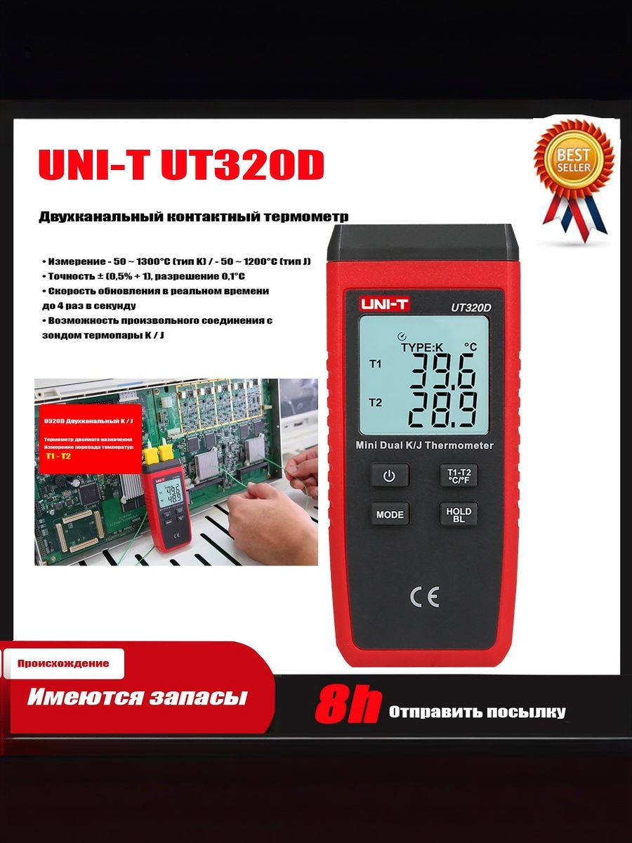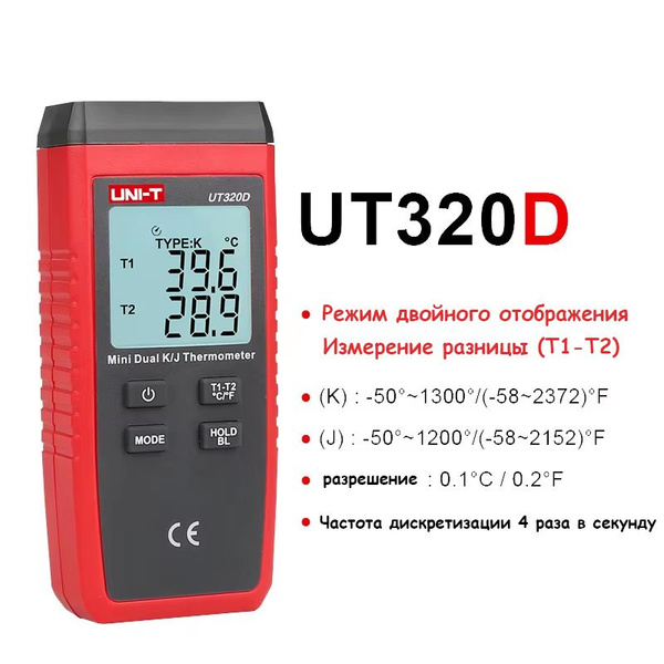 Мини-контактный термометр UNI-T UT320D, двухканальный с термопарой K ...