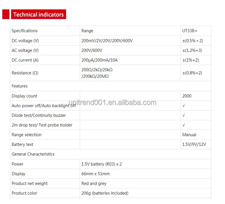UNI-T UT33+ Series Digital Multimeter UT33A+/UT33B+/UT33C+/ut33D ...