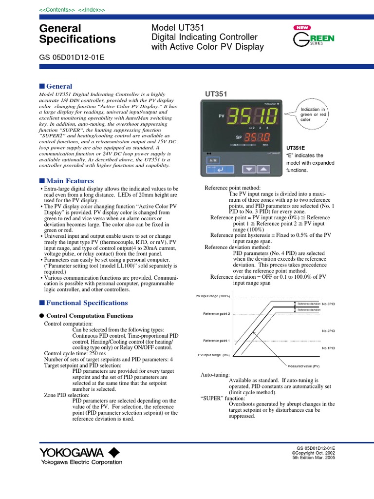 UT351-01 | Yokogawa | Digital Indicating Controllers