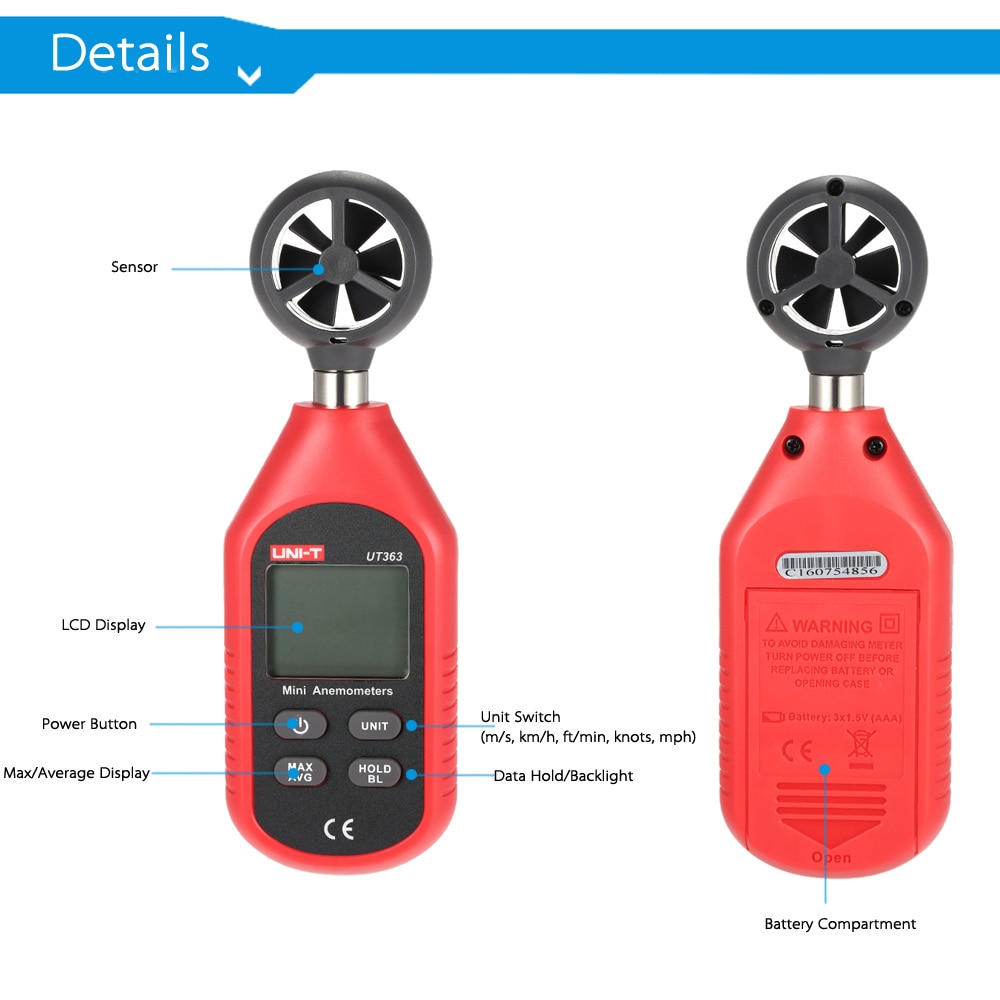 UNI-T UT363 Mini Anemometer Handheld Anemometer Ba... – Grandado