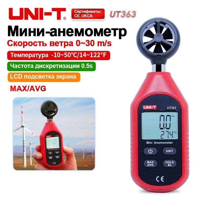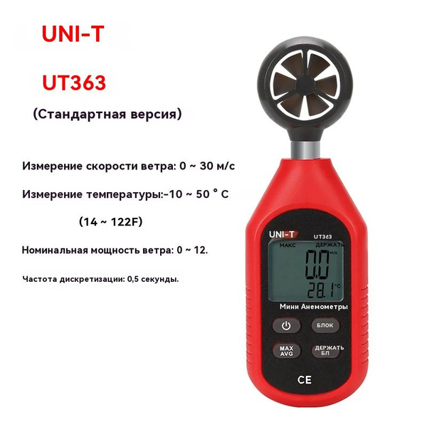 Анемометр UNI-T UT363 - измерение скорости ветра 0–30 м/с и температуры ...