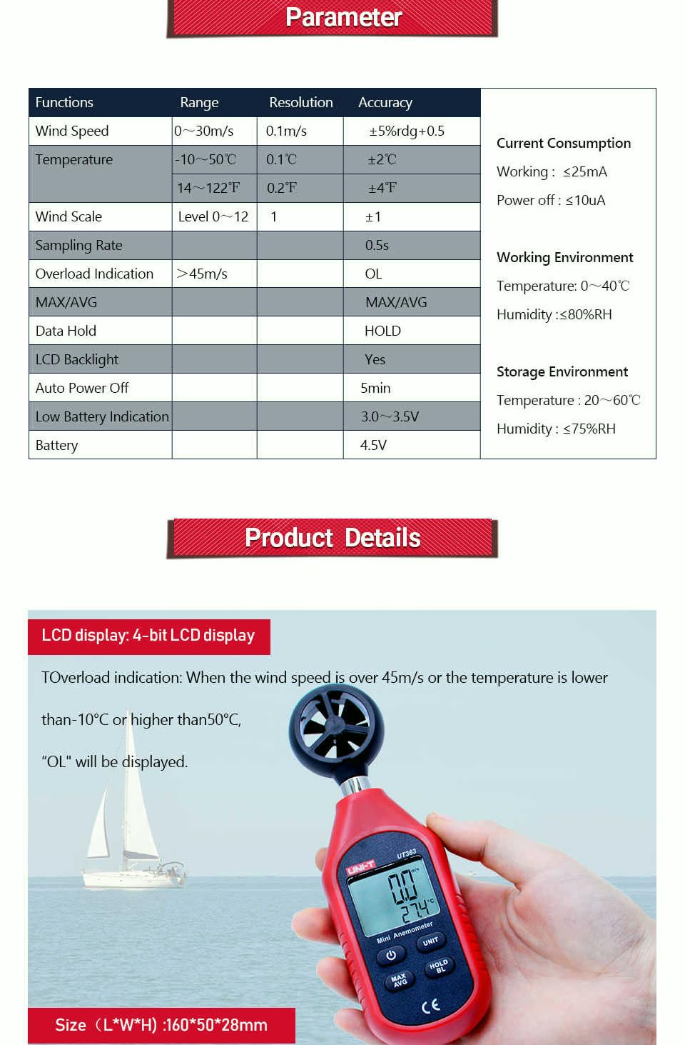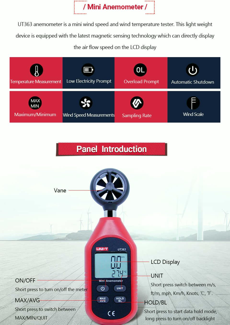 UNI-T UT363 MINI HANDHELD ANEMOMETER DIGITAL WIND SPEED WIND ...