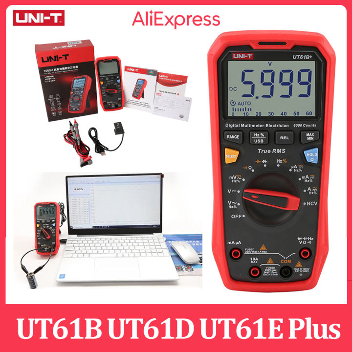 UNI-T Digital Multimeter UT61D+, True RMS 1000V AC DC 6000 Counts USB ...