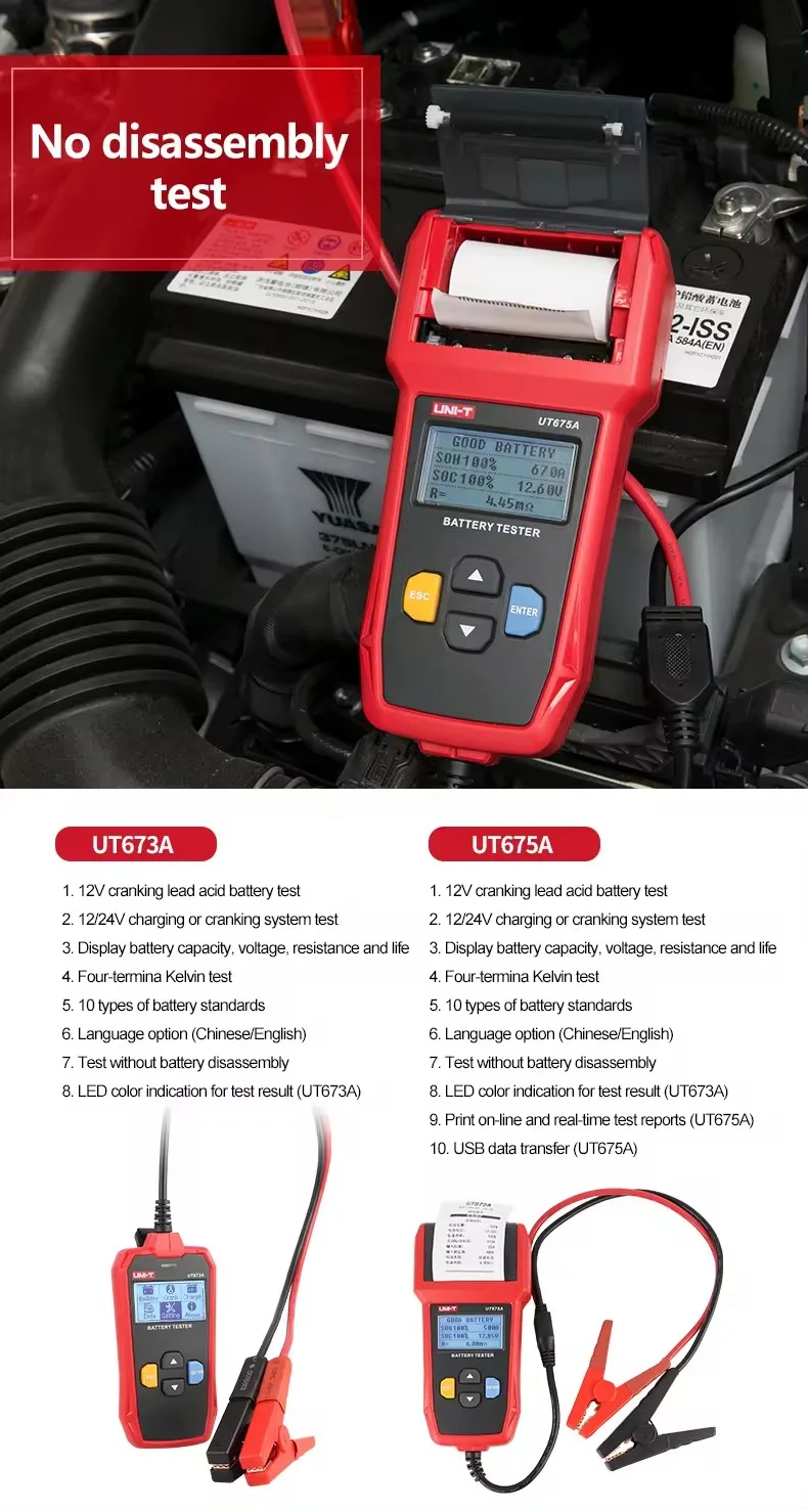 UNI-T UT673A UT675A 12V/24V Car Battery Tester Digital Car Diagnostic ...