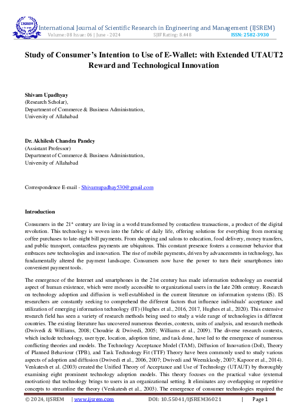 (PDF) Study of Consumer's Intention to Use of E-Wallet: with Extended ...