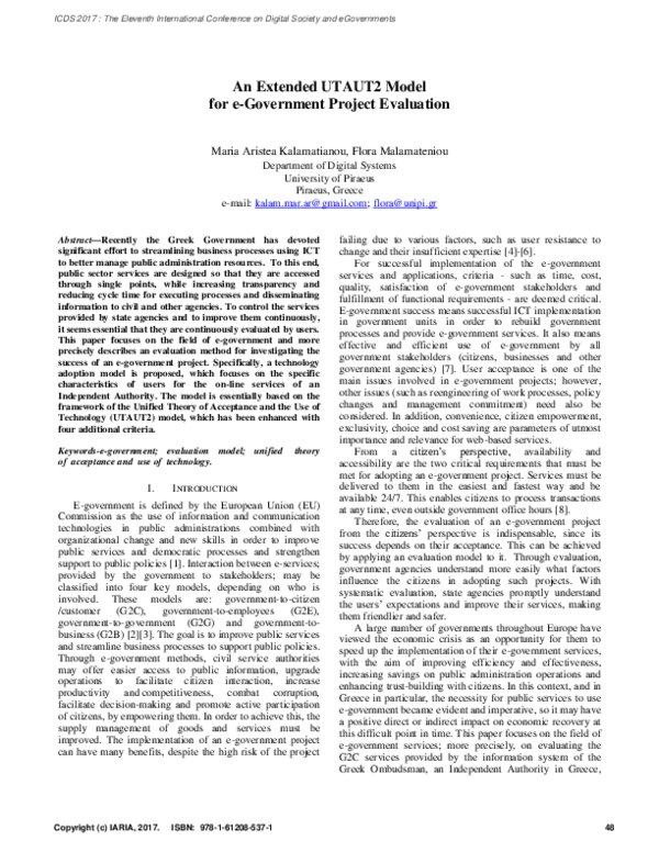 (PDF) An Extended UTAUT2 Model for e-Government Project Evaluation