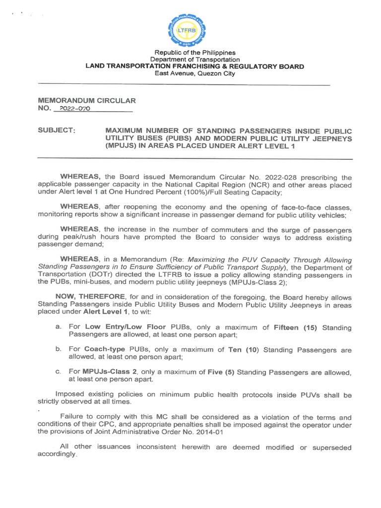 MC - 2022-070 Maximum Number Od Standing Passengers Inside Public ...
