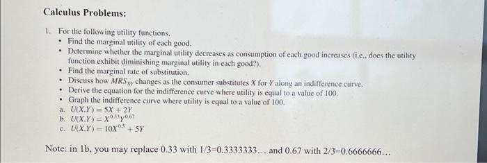 Solved Calculus Problems: 1. For the following utility | Chegg.com