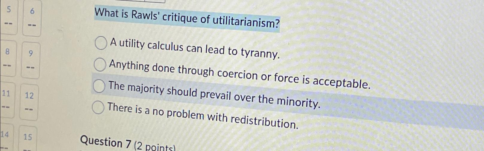 Solved What is Rawls' critique of utilitarianism?A utility | Chegg.com