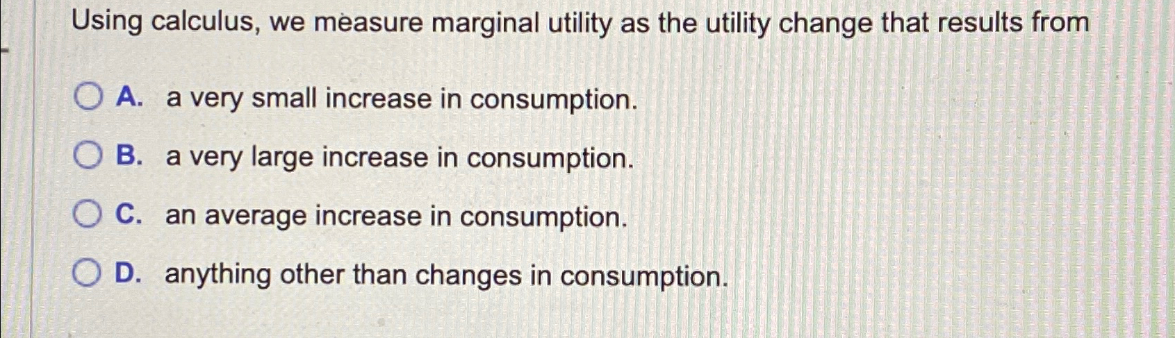 Solved Using calculus, we measure marginal utility as the | Chegg.com