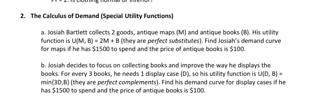 Solved The Calculus of Demand (Special Utility Functions)a. | Chegg.com