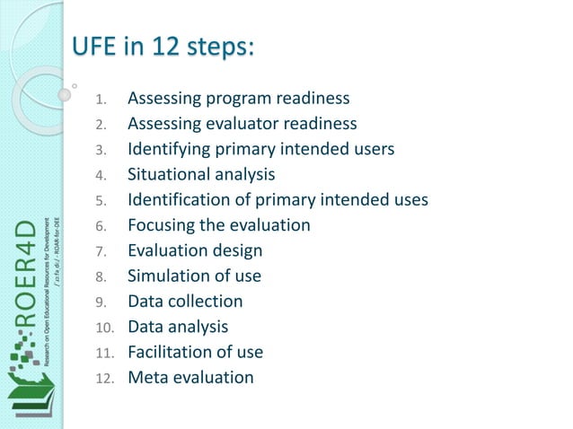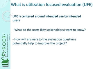 Utilization focused evaluation: an introduction (Part 1 - ROER4D) | PPT