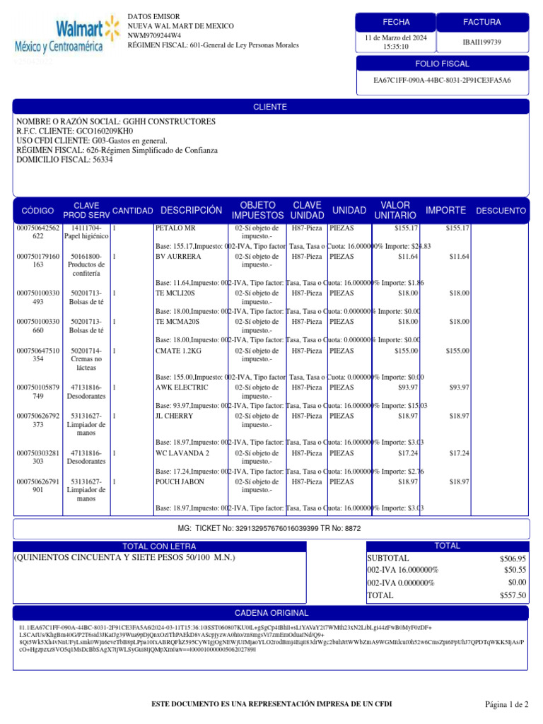 Factura CFDI de GGHH Constructores | PDF | Pagos | Economias