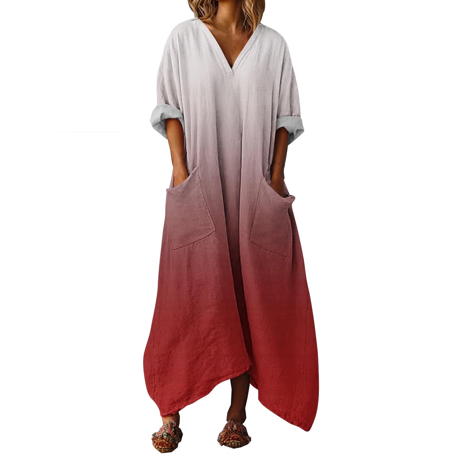 Ahabrexf Floral Dress for Women, Loose Gradient Print V Neck Dress With ...