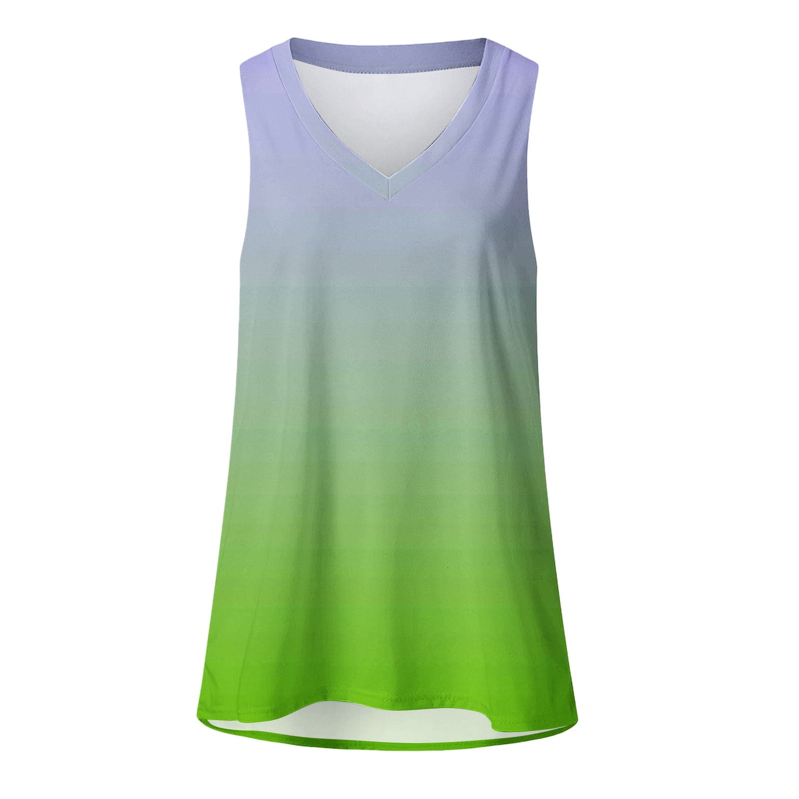 Cmfcve Women's Clothing Summer Ombre Gradient Sleeveless V Neck T ...