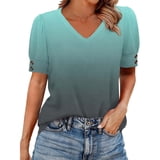 asjyhkr Tops for Women V Neck Short Sleeve Gradient Blouses Loose ...