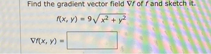 Solved Find the gradient vector field Vf of f and sketch it. | Chegg.com