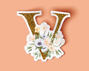 Floral Letter V Sticker