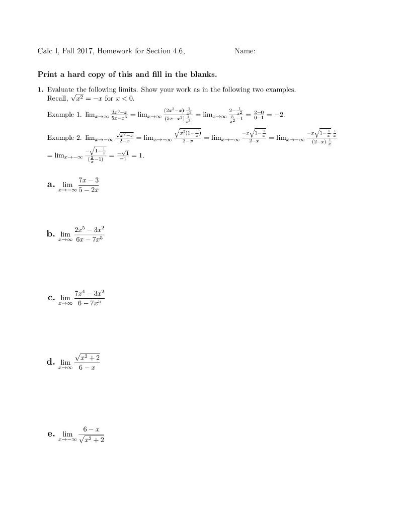 Solved Calc I. Fall 2017, Homework for Section 4.6, Name: | Chegg.com
