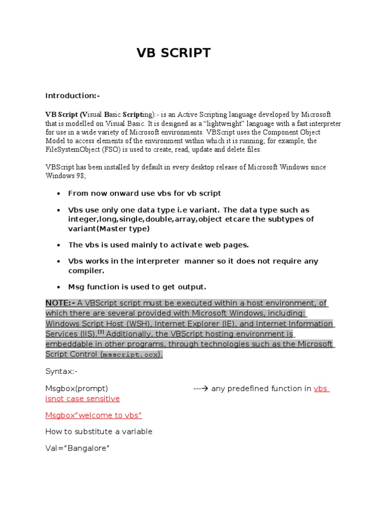 Vb-Script 1 | PDF | Visual Basic For Applications | Software Development