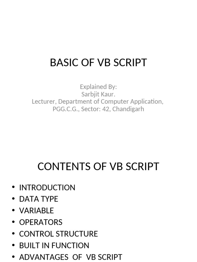 Introduction to VBScript: Basics and Fundamental Concepts | PPT | Web ...
