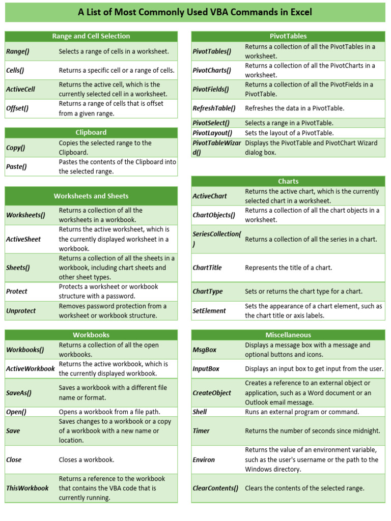 Common Excel VBA Commands List | PDF | Microsoft Excel | Software ...